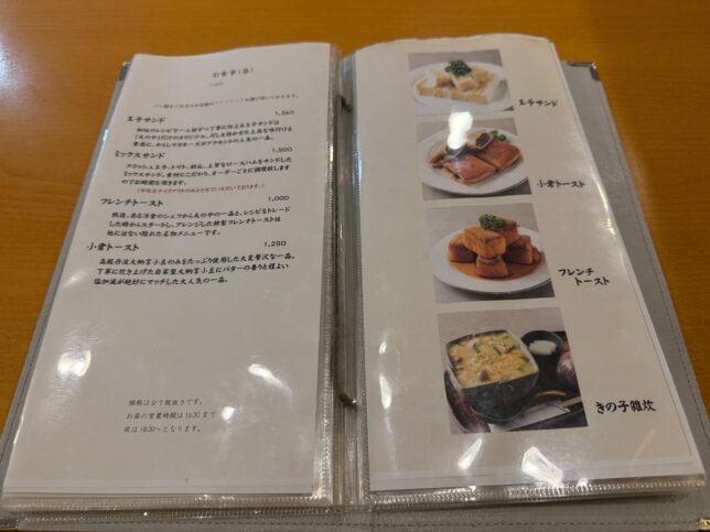 次のページがお食事で、一番上に乗っているのが「玉子サンド」です。お店で食べるの初めてで嬉し過ぎました。