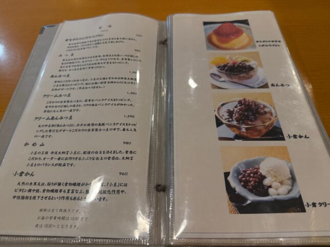 こちらがメニュー表です。最初に歴史が書かれています。こちらだと昭和2年開業、昭和7年創業ですね。