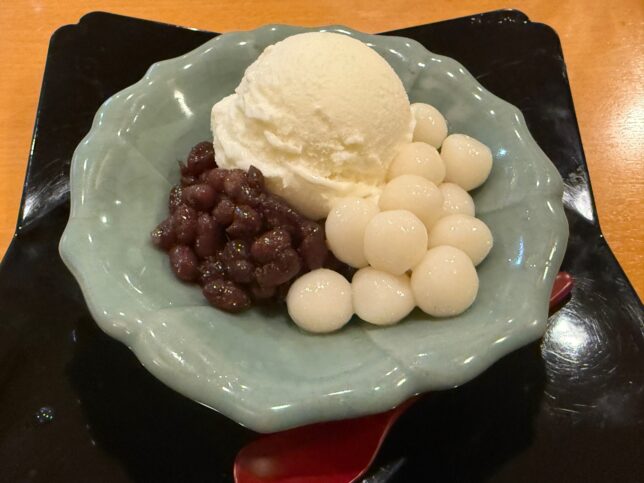甘味系です。小豆は丹波大納言を使用、シロップ・寒天・白玉は自家製です。