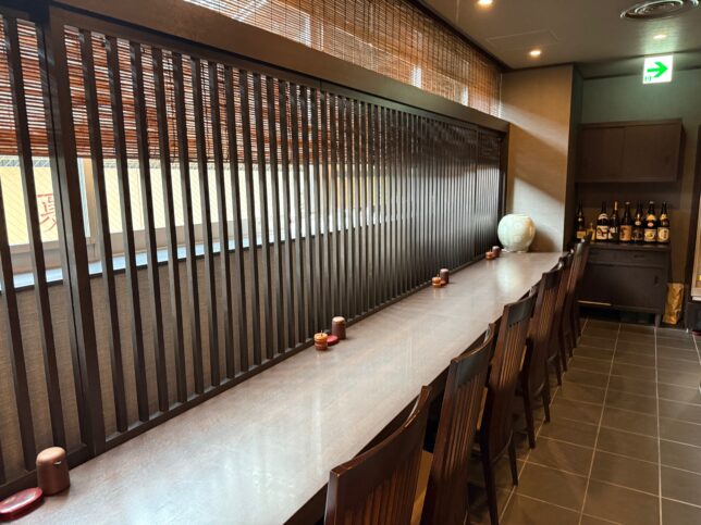 席はボックス席とカウンター席があるのですが、カウンターは川に並行して作らています。川の風景は見えないのであれですが。
