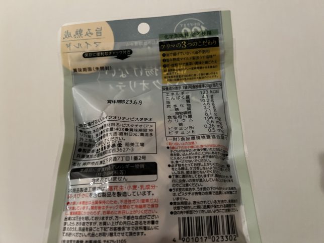 別タイミングでは、ピスタチオを購入しています。油で揚げないハイクオリティとあります。