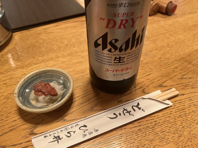 今回はスーパードライでスタートしました。アサヒビール本社が直ぐそばにあるので、リスペクトの意味も込めまして。