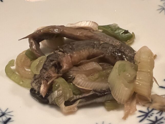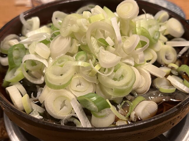 そして、まずはどじょう鍋がやってきます。”まる”という丸ごと煮たものと、”ぬき”という骨を抜いたものがありますが、今回はまるをチョイスしています。