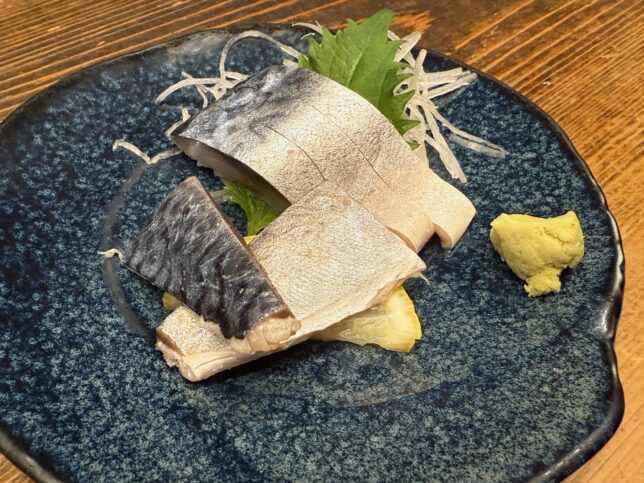 こちらが名物のしめ鯖。お酢の具合がとても良く、お酒が永遠に飲めそうな味でした。