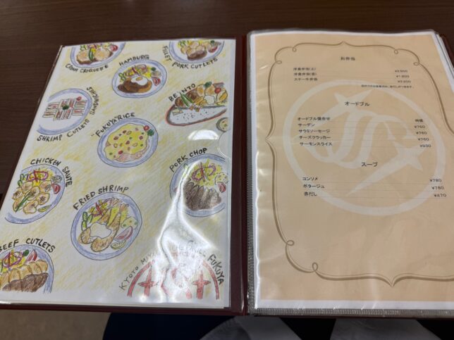 グリル富久屋さんはランチタイム行列が出来る人気店とのことです。今回は20時前の閉店に近い時間だったからか、並ばず入ることが出来ました。地元の年配の方々、部活帰りなのか?みたいな若者、私、欧米系の旅行客と、地元にも観光客にも愛される感じがとても素敵でした。京都のわりとど真ん中にありますが、地元感がかなり強くてほんと素敵でした。こういうお店は家の近くに欲しい。
