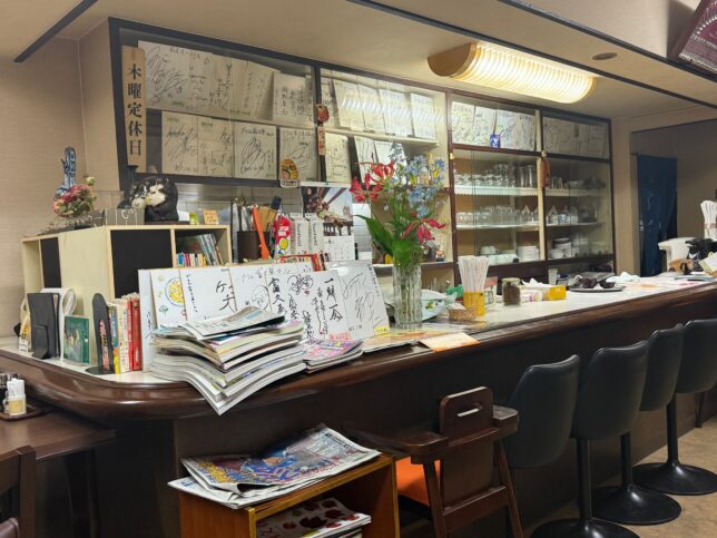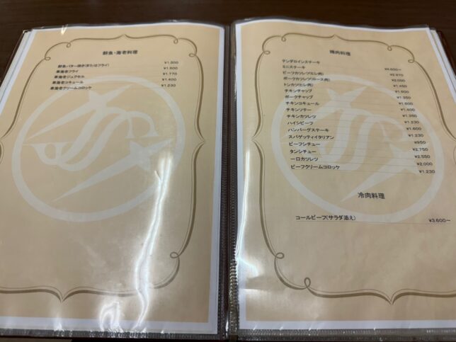 店内に入りました。地元客、観光客(私)、インバウンドのお客さんと訪れている人も様々いました。雰囲気もとても良い。こちらがメニューです。1ページ目はお弁当・オードブル・スープが並んでいます。 次のページは一品料理のページです。左がお魚系で、右側がお肉系ですね。