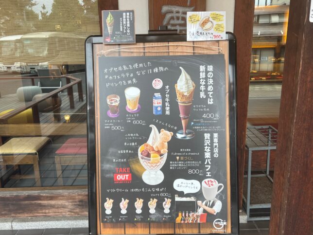 店頭にはカフェメニューも。地元オブセ牛乳を使用したメニューが多いのは好感持てますね。