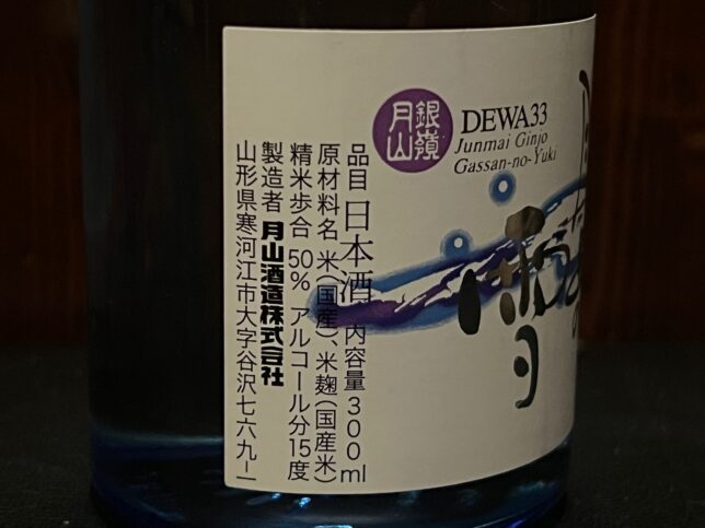 ラベルアップで。出羽燦々を100%使用しています。月山酒造さんは米作りも関わっていることも特徴の1つ。
