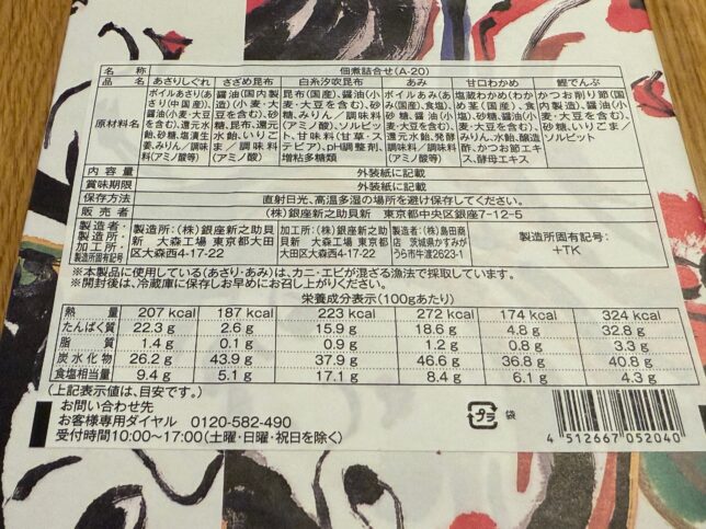 という銀座新之助貝新さんの佃煮の詰め合わせを購入しました。