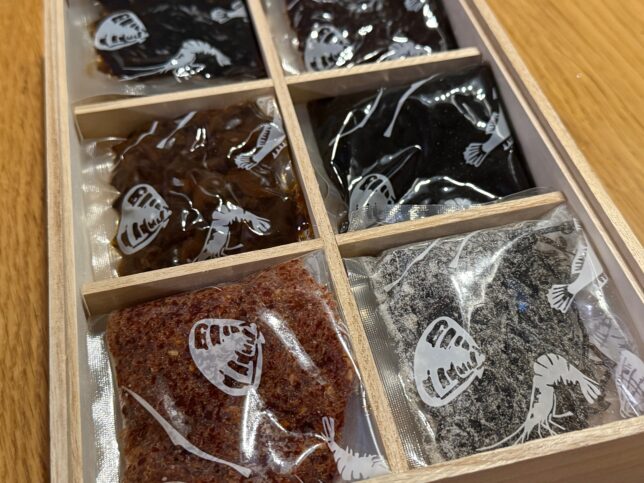 中は小分けして入れられています。パッケージそれぞれに蛤のイラストが載っているのが貝新さんらしくて良いですね。