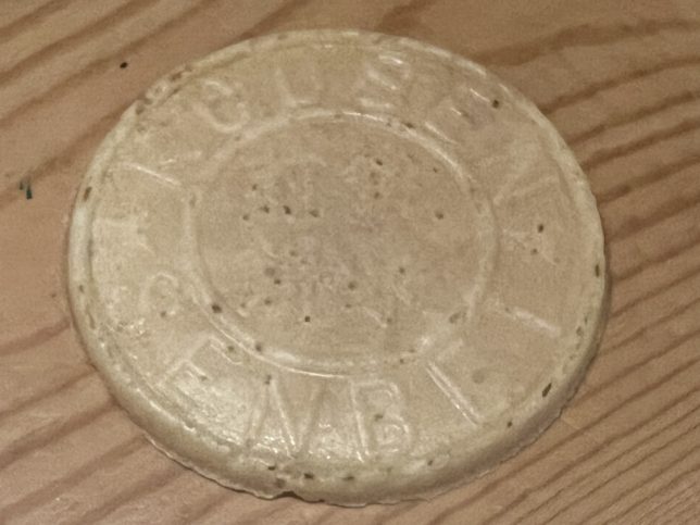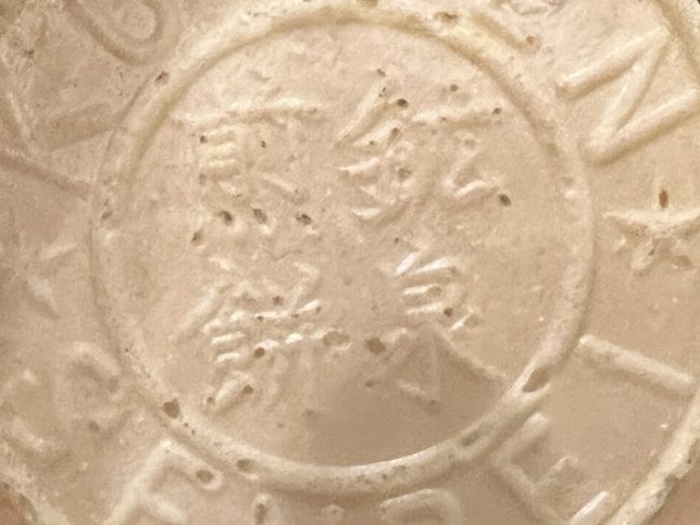 1枚取り出すとこんな感じです。温泉街で売っているお煎餅ですね。アルファベットでKOUSEN SENBEIと書かれています。