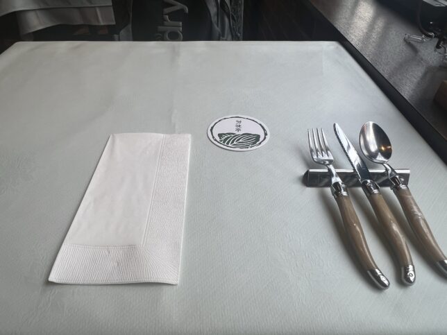 席に着きます。カトラリーがセットされているのも、高級感あって良いですね。