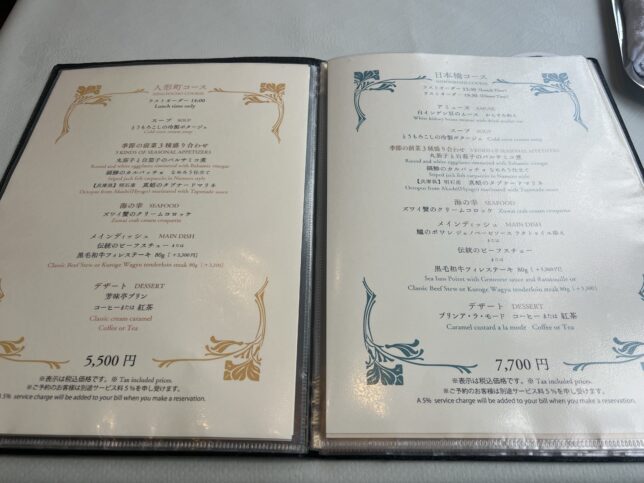 そしてこちらはコースです。人形町コース・日本橋コースが。今度夜食べにきたいなぁ。