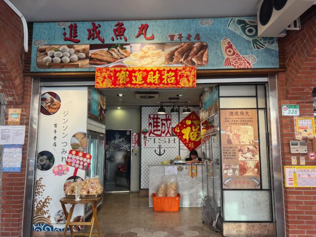 という、進成魚丸さんの外観です。迪化街を歩いているときに「お、百年老店」って書いてある!と発見したお店です。書いててくれると助かる民が、ごく稀にいるのです。