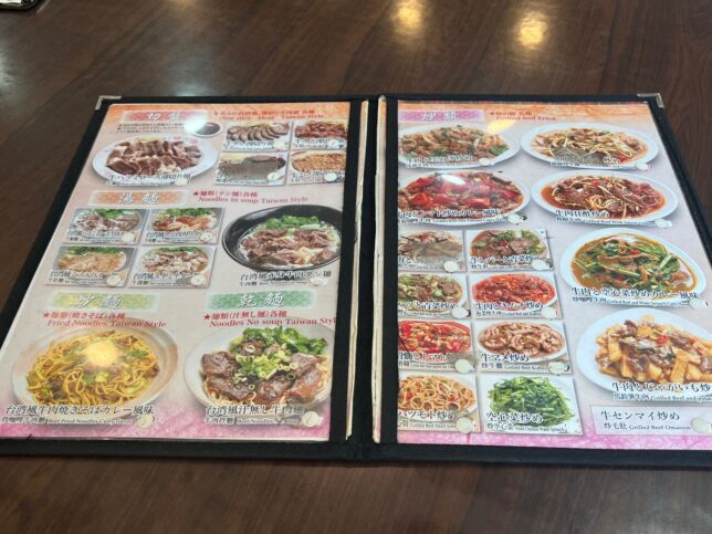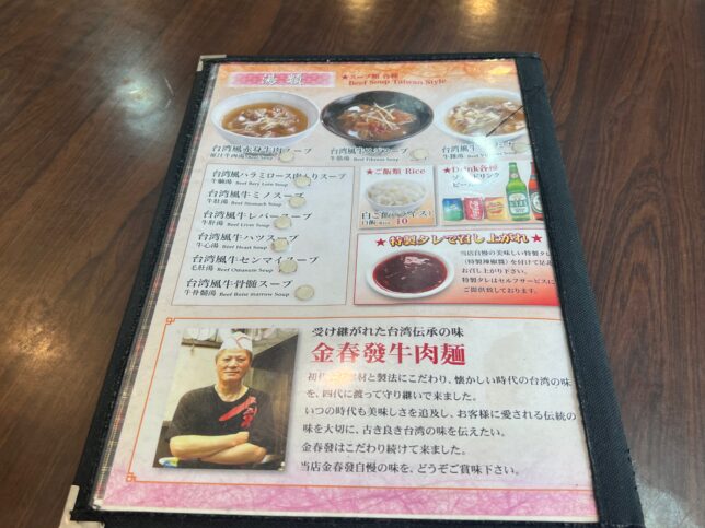 こちらがメニュー表です。日本人と分かると日本語メニューをくれました。清燉牛肉湯に、肉の部位が選べます。ハラミ・牛ミノ・レバー・ハツなど。