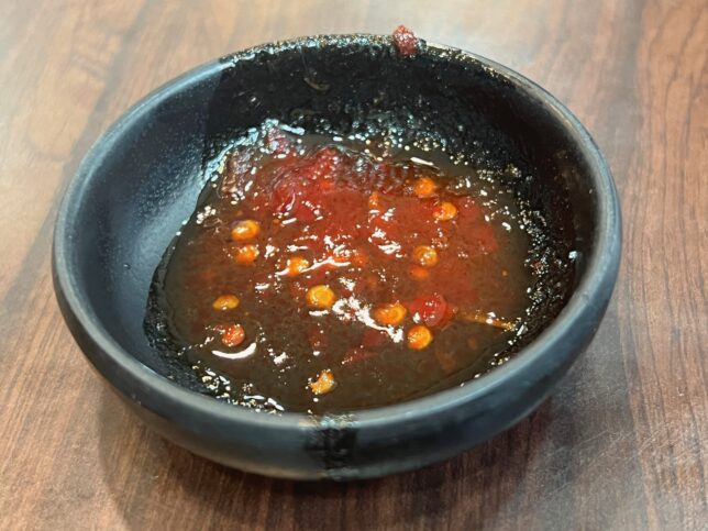 特性のタレもサーブされました。唐辛子系の絡みにやや酸味も入っていました。味わいがくっきりして、美味しさの輪郭が捉えやすくなります。