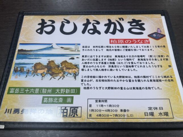 こちらがおしながきです。上述したルーツである柏原のお話が書かれています。