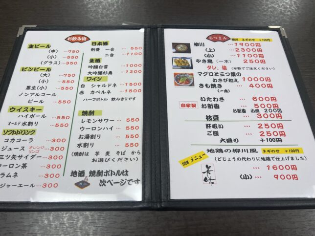 次ページです。こちらは飲み物とおつまみですね。おつまみ系が充実しているのも素敵だ。