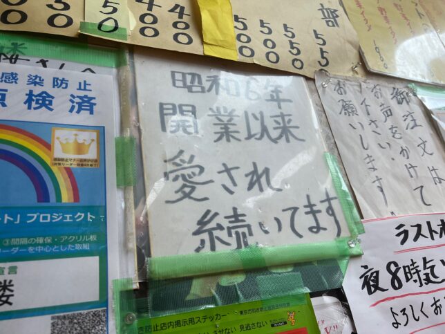 その中にこんな表示が。「昭和6年開業以来愛され続いています」、の文字。控えめな感じが良いですね。