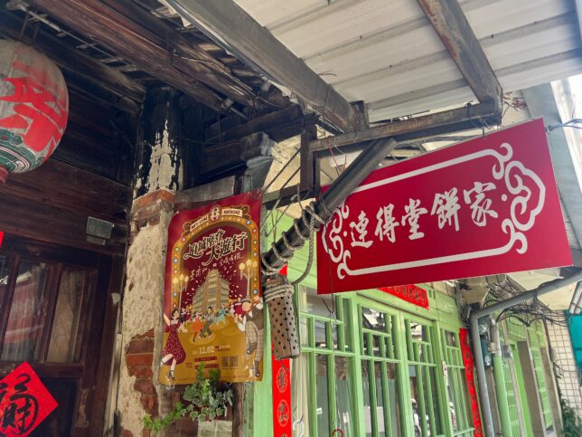 公園國小のバス停から徒歩4分ほど、台鉄・台南駅から徒歩10分ほどの場所、崇安街の細い路地に店舗を構える 連得堂餅家。日本統治時代の大正年間(1912-1926年)に、蔡清連・蔡清得兄弟が日本しきの玉子煎餅の技術を学び開業した煎餅店です。第二次世界大戦後、米軍が台南周辺に駐留した際には土産需要でヒットし、店名のアルファベット表記Leng Tih Tongを焼印するようになり、そのデザインも人気です。現在は4代目が手売りできる分だけ販売するビジネスをされており、1人2袋制限までと購買制限があるほどの人気店です。