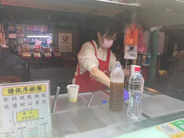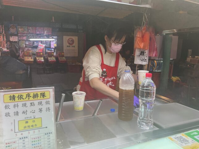 サトウキビをベースに、おそらく蜂蜜的なもの、漢方的なもの、ヤクルト等を混ぜてもらっていて、基本線としては甘いのですけど、若干の苦味もあって、ごくごく飲める健康ドリンク的な風味がありました。この日まあまあ暑かったこともあり、さっぱり頂けました。いやー、良い台湾老舗デビューだ。