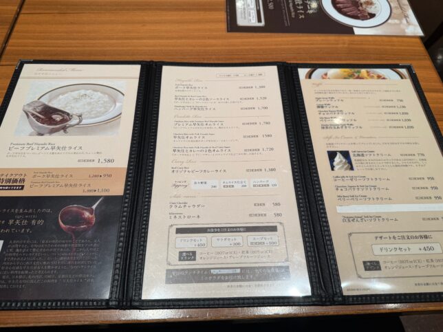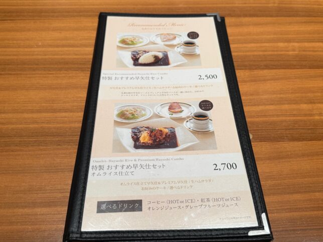 店内に入りました。1ページ目から早矢仕ライス推しのセットが紹介されています。