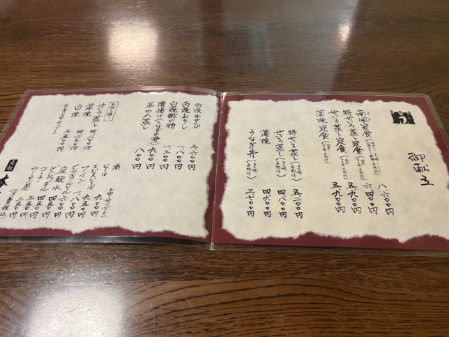 メニュー表はこちらです。せいろ蒸し単体もオーダー可能ですし、定食にすることも可能です。
