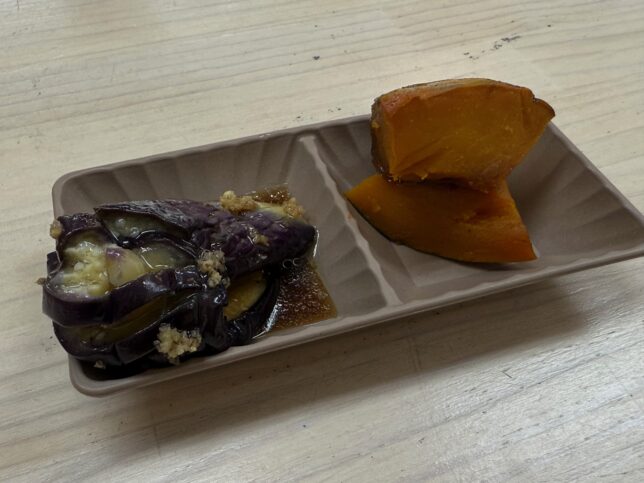 茄子の煮浸しと、かぼちゃです。前菜にピッタリ。