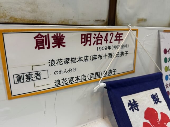 大江戸線・両国駅から徒歩2分ほど、石原一丁目のバス停から徒歩3分ほどの場所にある 浪花家本店。1909年(明治42年)に神戸で発祥した店舗にルーツを持ちます。その本店から暖簾分けで兄弟子が開業したのが、およげ!たいやきくんのモデル店として知られる麻布十番にある浪花家総本店さんで、弟弟子さんが昭和初期に銀座で開業したのが、今回ご紹介の浪花家本店さんとなります。戦後今店舗を構える両国駅近くに移転されています。