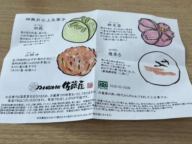 1つ1つの生菓子の説明が載っています。こういう説明があるの素晴らしいですね。お客さん側も学びになるもの。