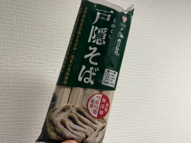 別タイミングで、戸隠そばの乾麺も購入しました。食塩無添加つるつる食感とあります。