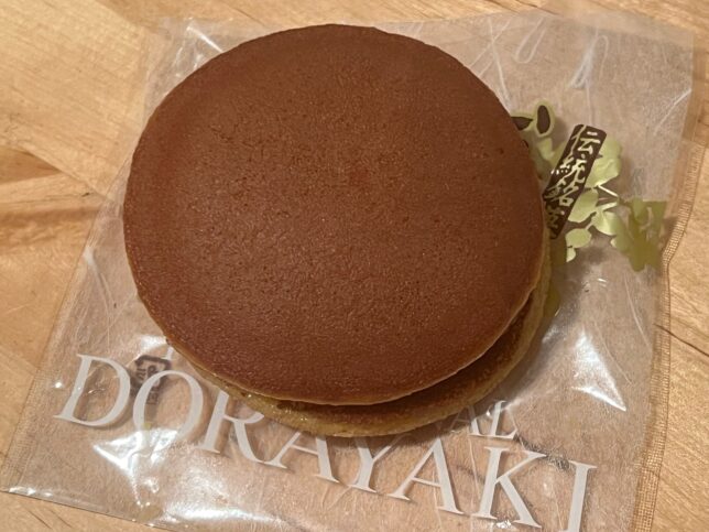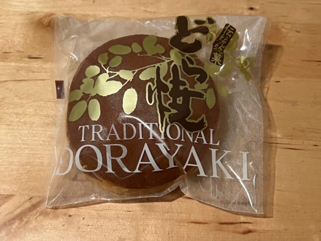 どら焼をアップでどうぞ。TRADITIONAL DORAYAKIの文字がインパクトありますね。