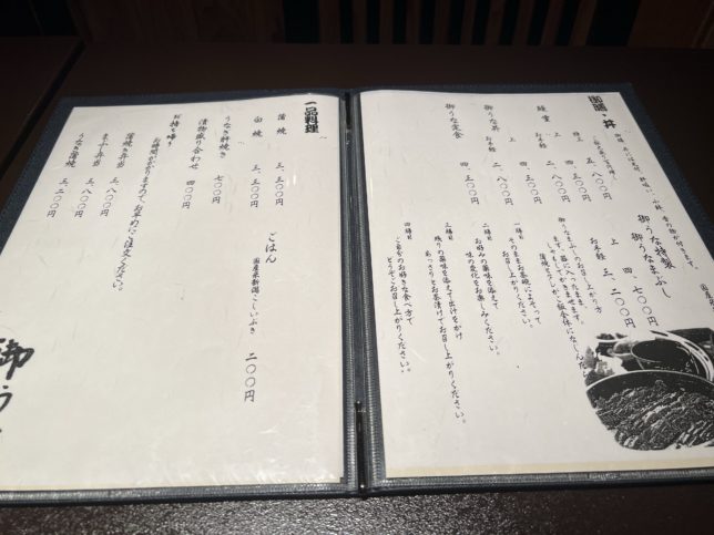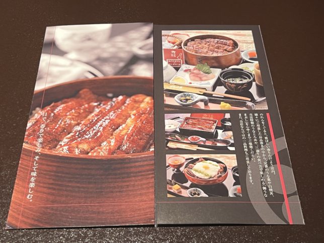 こちらがメニュー表です。鰻重・丼・うなまぶし・一品料理があります。