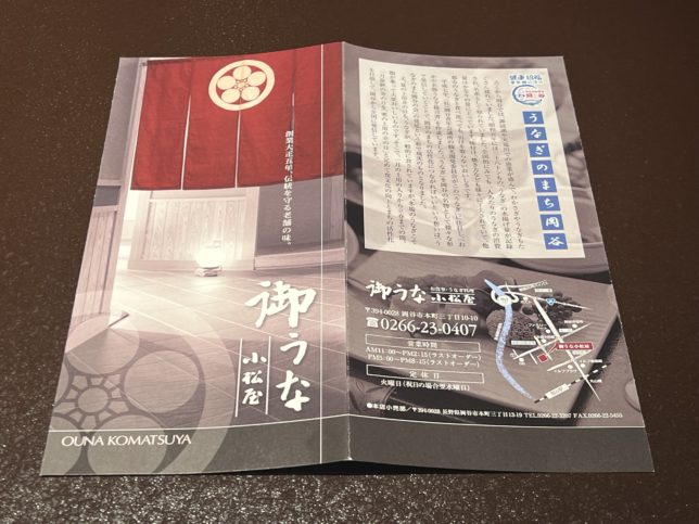 オーダーして届くまでの間に、パンフレットを確認。岡谷とうなぎの関係性が書かれています。