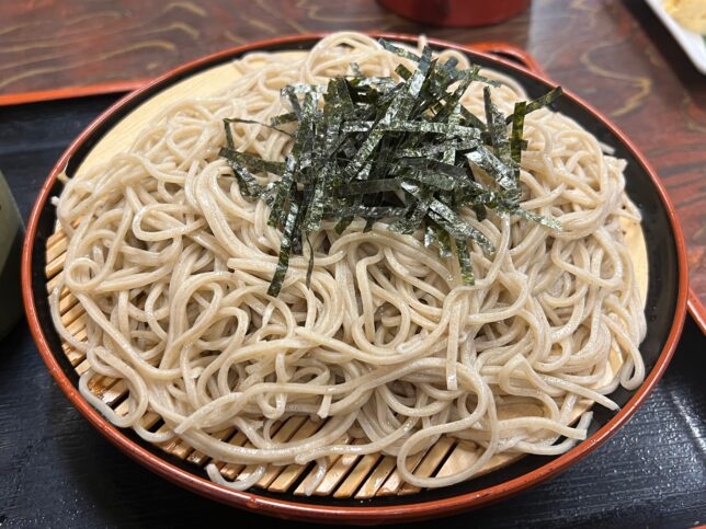 蕎麦をアップで。手打ちと思えないほど綺麗なお蕎麦。めっちゃ美味しかった。