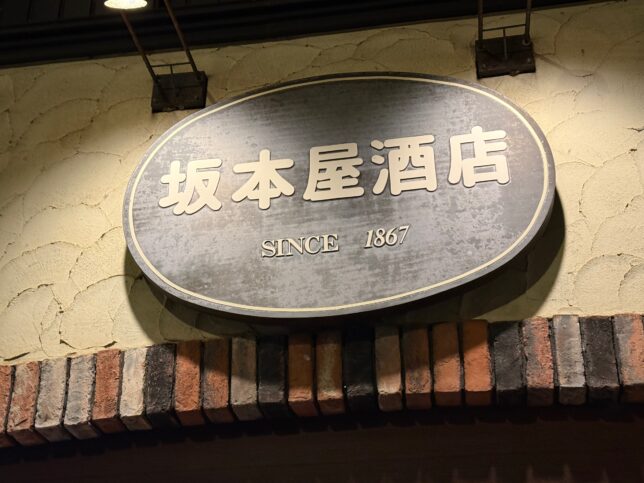 見つけたきっかけはこの看板。SINCE1867って書いてあったのです。みなさんこうやってSINCEを書くと老舗マニアが勝手に立ち寄りますよ。ちなみに1867年は坂本屋酒店さんと名称が変わったタイミングですね。