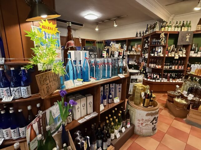 店内に入りました。お酒がずらりと並んでいます。地酒中心なのが嬉しいですね。