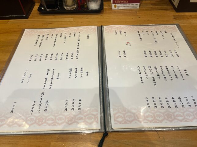 こちらが一品メニュー。お酒飲みたくなっちゃうなぁ。