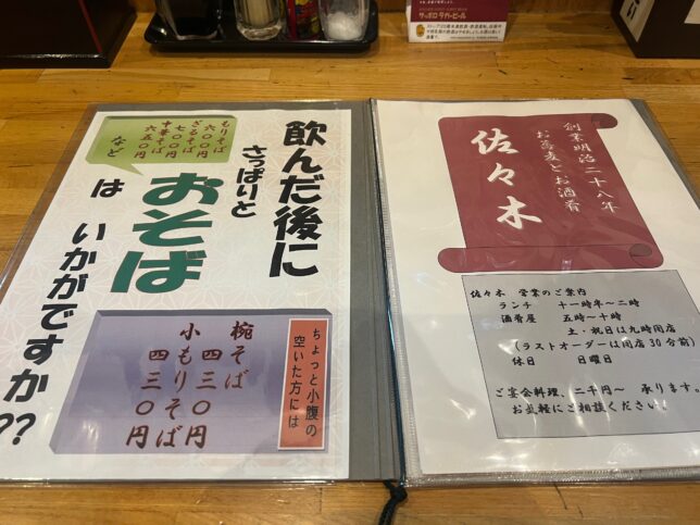 1895年創業、蕎麦屋として居酒屋として利用できる 佐々木そば店