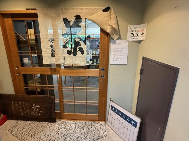 北浜二丁目のバス停から徒歩7分ほど、大阪メトロ堺筋線・北浜駅の6番出口から徒歩3分ほどの場所、堺筋沿いに店舗を構える 先春園本店。1862年(文久2年)、煎茶の祖とされる売茶翁(ばいさおう)の没後100年忌にあわせて開かれた青湾茶会(青湾とは太閤秀吉が命名した淀川河畔桜ノ宮地区の水が美味しい場所)にて、第二茶席を担当した初代・荒堀源之助氏が”天王寺屋”の屋号でお茶の小売を始めたことが創業です。のちに中国・明代の皇室の名茶園・先春山にちなみ”先春園”と解明されています。現在はお茶のセレクトショップとして、日本茶を中心としつつも、中国茶・紅茶等も扱われセミナーも実施されるお茶の文化拠点的なお店です。