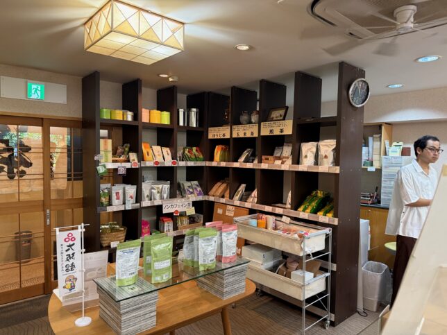 店内に入りました。お茶が複数並んでいます。お茶について質問すると色々教えてくれるかなりフレンドリーなお店です。撮影もどんどんしてください、と推奨してくれる感じが気持ちよかったです。 昔の茶筒、茶釜の展示です。カッコ良いね。外国人のお客さんがたくさん写真撮られていました。