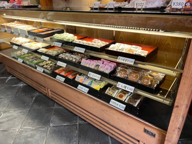 店内に入ります。和菓子・和洋菓子・焼き菓子等ラインナップ豊富です。今回は青嵐巻をゲットしました。