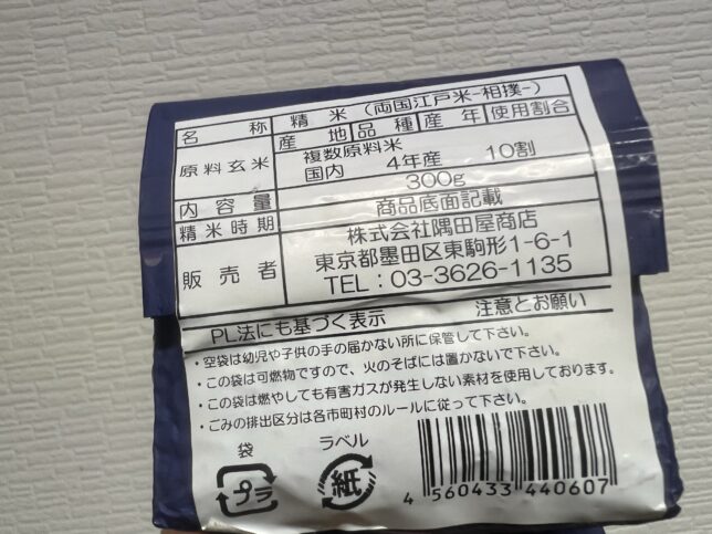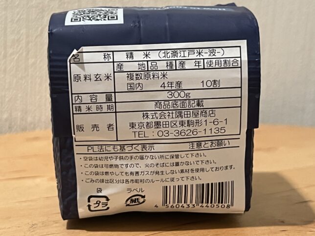 で、今回は両国江戸米相撲・北斎江戸米波の2つを購入しました。両方とも2号=300gのお米が入っています。