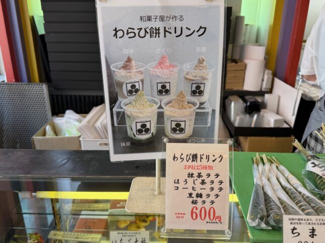 そして、今回の目当てはこちらです。わらび餅ドリンク。珈琲・さくら・黒糖・抹茶・ほうじ茶の5種類がありました。