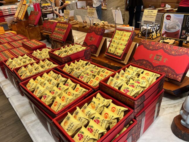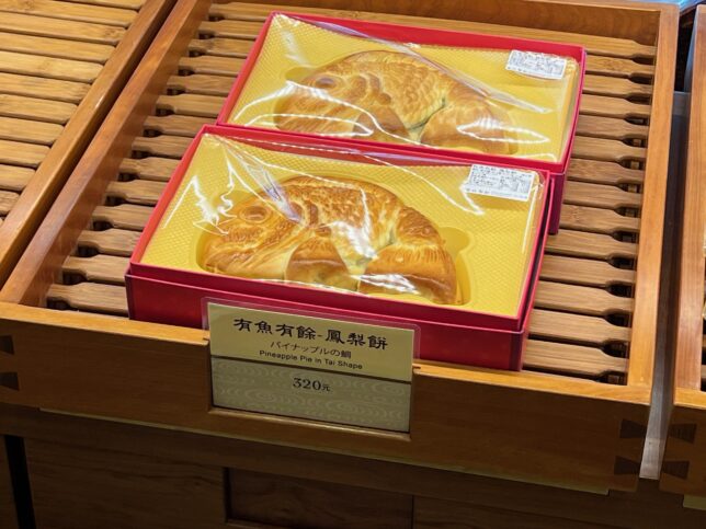 パイナップルケーキで鯛を模ったお菓子も。この辺りは東アジア共通の文化なのだろうか。