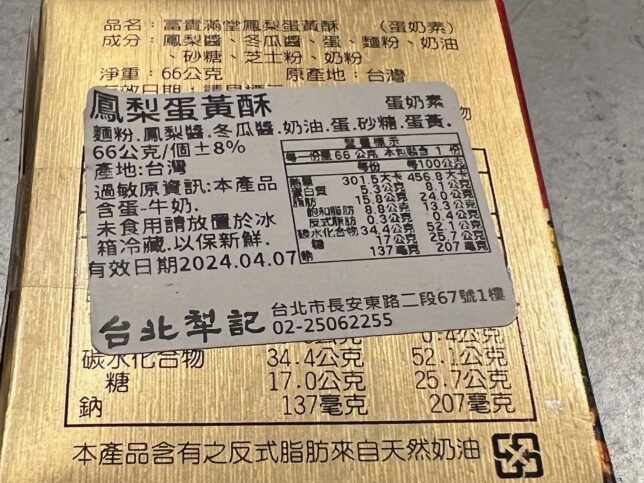 台北犁記、鳳梨蛋黃酥(パイナップル黄卵ケーキ)を買う / 台湾 台北市中山区 1894年創業店にルーツ