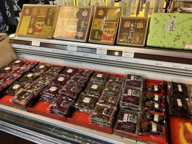 こちらはしば漬けメインのコーナー。しば漬けに複数種類があると関西に来て初めてしりました。
