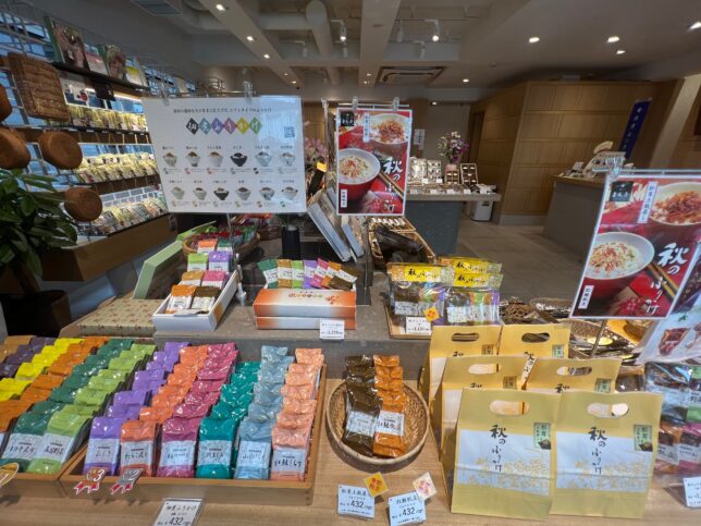別角度のディスプレイ。こちらはお茶漬けと、塩分控えめに作られた佃煮・白佃煮が販売されています。
