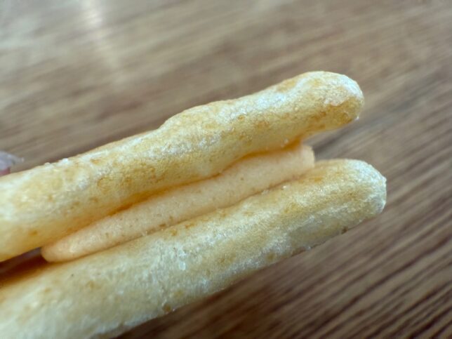 こんな感じで、お煎餅、というかあられにチーズが挟んであります。サクサクのアラレとと濃いめのチーズがめっちゃ合う。