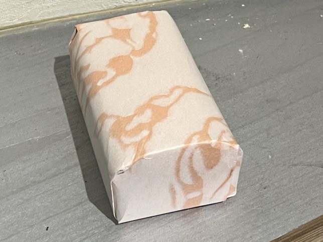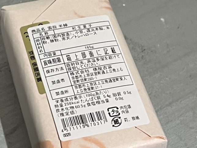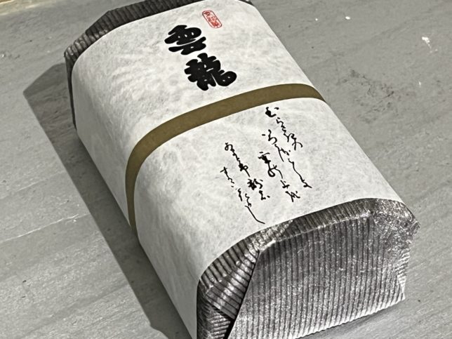包装紙を取ると、雲龍の文字が。俵屋吉富を代表するお菓子になります。